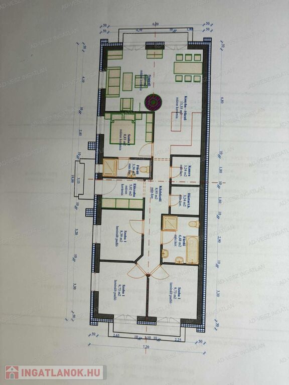 A 101m2-es belső hasznos alapterület alkalmassá teszi akár nagyobb család részére is a kényelmes együttélést.