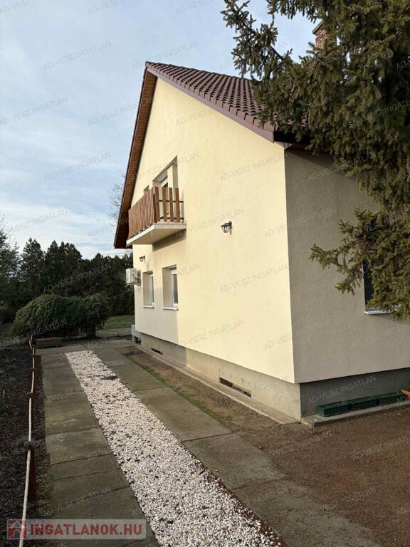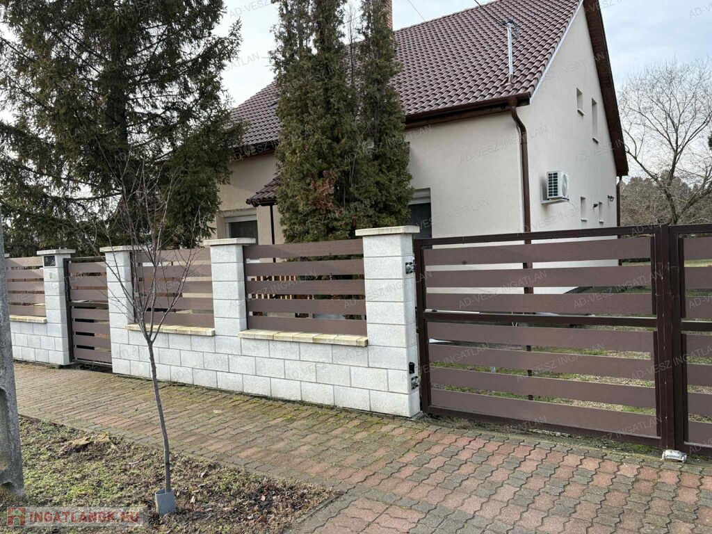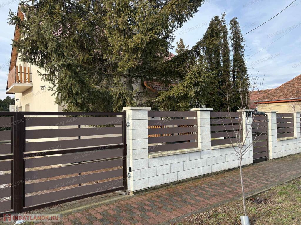 Az ingatlan egy 1083m²-es összközműves, rendezett telken helyezkedik el, a kert öntözését fúrt kút is segíti.